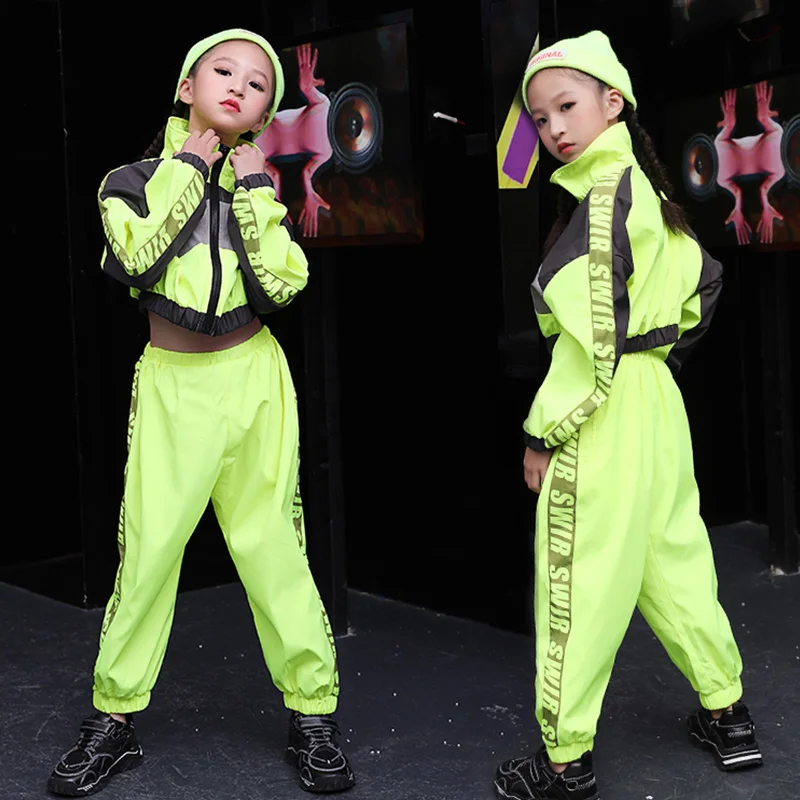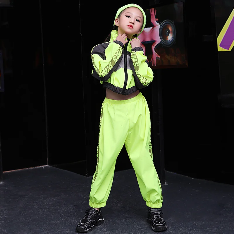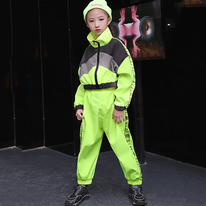 Hip Hop Costumes Fashion Fluorescent Children Girls Street Dance Clothes Jazz Cheerleader Performan